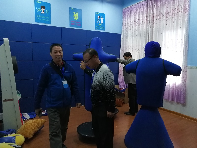 老师们在宣泄室亲自体验
