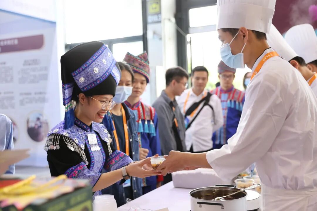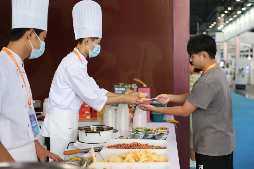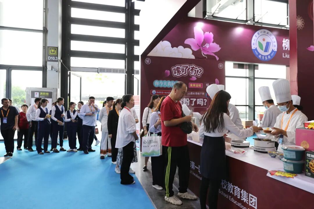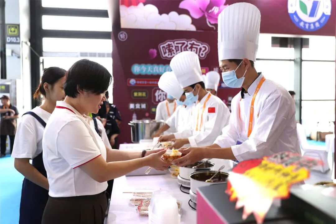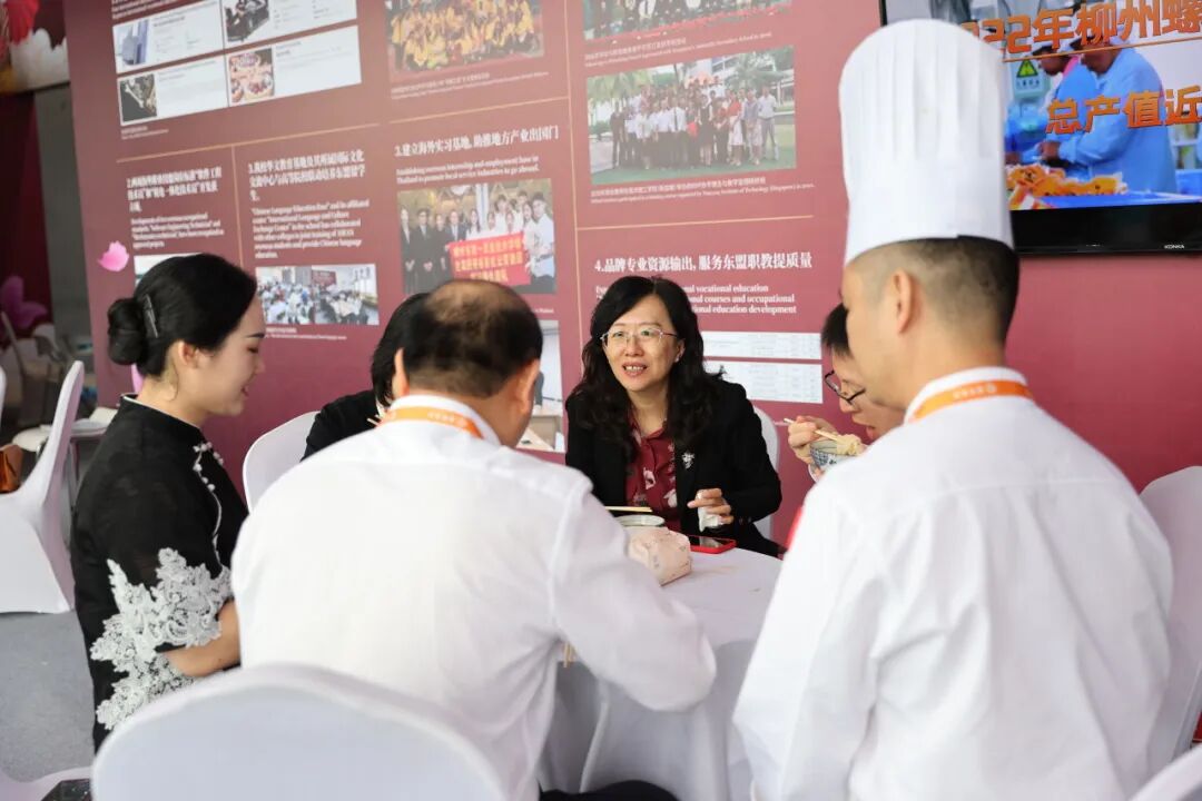 来自老挝劳动与社会福利部的外国嘉宾到我校展位交流体验。此前,我校的软件开发、机电技术等专业教学标准中标老挝教育部的职业教育项目,助力老挝职业教育发展,此次交流,双方就烹饪相关课程建设和教学标准输出、校企培训进行了探讨。