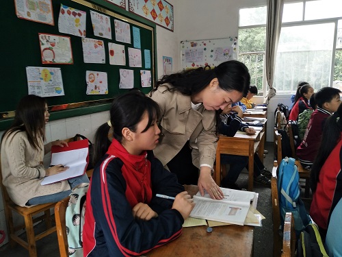 柳北区教研室林慧慧老师亲切地走到学生身边,关心学生学习情况