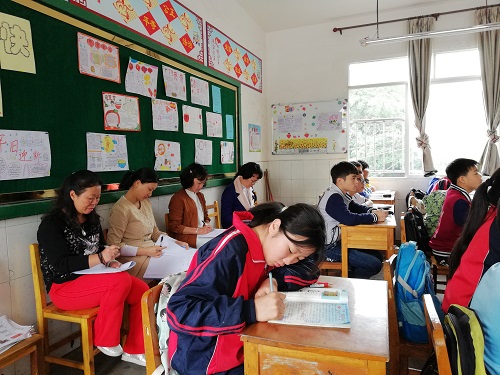 语文教研组的领导老师们认真观摩并做记录