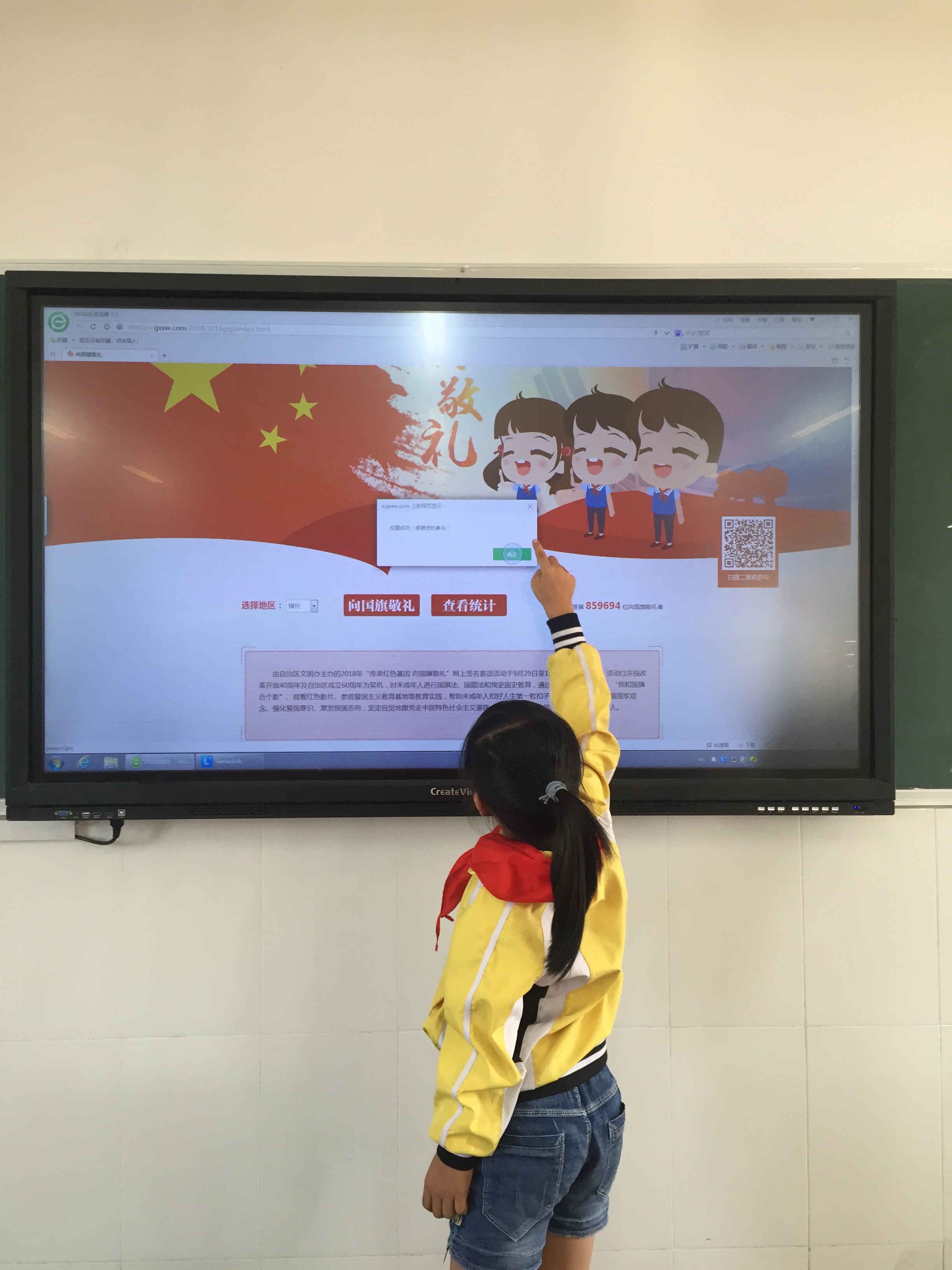(和佳报道)2018年9月30日下午,我校各班开展了“向国旗敬礼”的爱国主义教育活动。