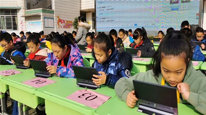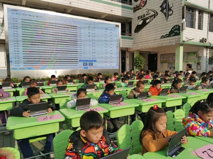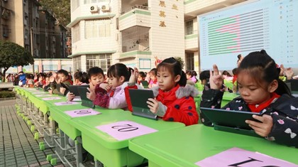 本次活动由学校教导处精心策划,语数英学科全体老师们协同组织,历经班级初赛和学校决赛两个阶段。各班学生在学科老师的组织下踊跃参加,在经过班级的初赛选拔后,每班每学科分别选出十名优秀学生代表参加全校决赛。决赛分为“语文诗词大赛、数学速算比赛、英语综合能力竞赛”三个学科模块进行,利用Aiclass云课堂为平台,在规定的6—8分钟内参加决赛的学生在平板上进行竞赛答题,通过显示大屏向全校师生进行大数据实时呈现竞赛试题、答题情况,以正确率高,使用时间短进行排名。引入大数据进行实时呈现,与选手共参与,在一次次分数的刷新中,现场气氛异常热烈,活动掀起了一个又一个高潮。活动中,还设置了古诗词互动的有奖环节,观摩的学生也纷纷得以大展拳脚,对答如流。充分展示了鹅小学子在古诗词方面的丰厚的积累,整个校园沉浸在一片欢乐的海洋之中。