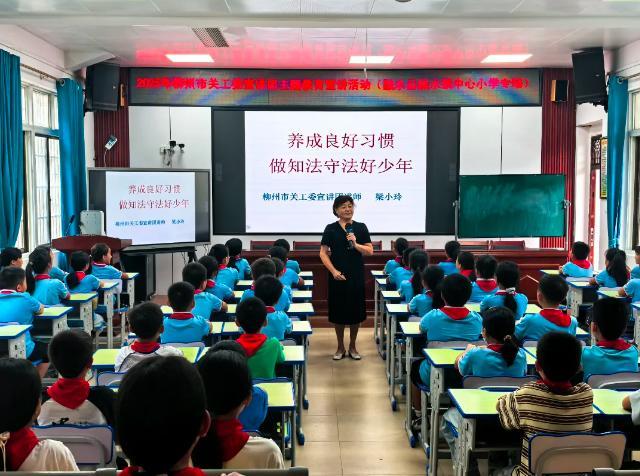 为增强青少年法治意识,培养良好行为习惯,2025年9月28日,柳州市关工委宣讲团走进融水镇中心小学,开展了一场生动的法治主题教育宣讲活动。活动由副校长贾年主持,四、五年级学生参加。