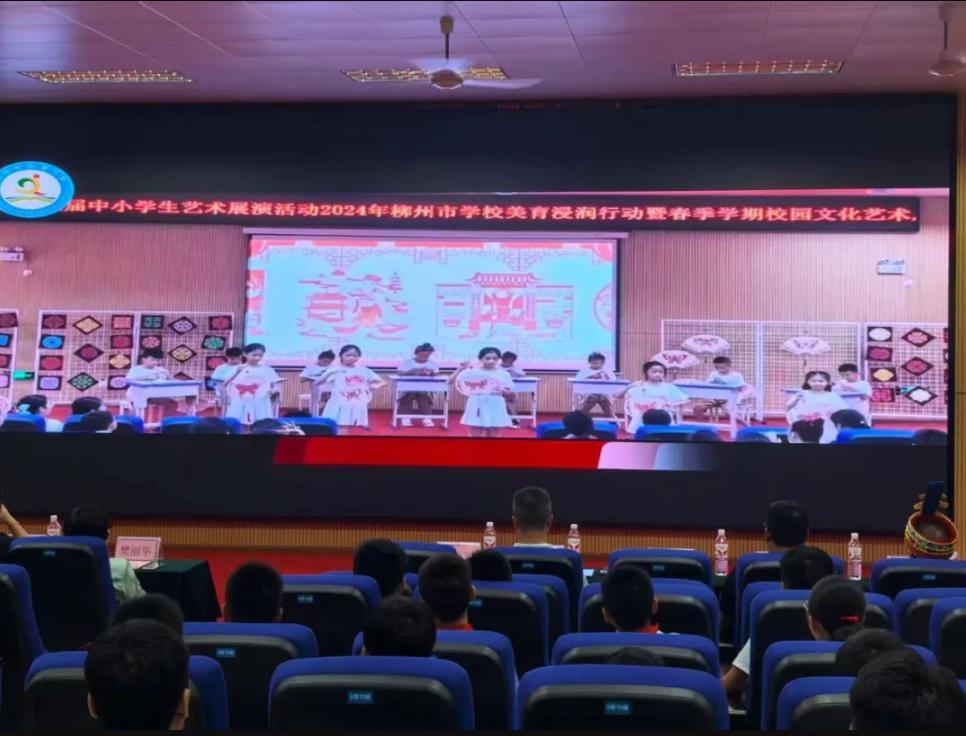最后,我校学生身着民族服饰,带来柳州山歌合唱。稚嫩的童声与悠扬的山歌旋律交织,唱出了少年儿童对非遗文化的喜爱与传承之志,将活动氛围推向高潮。