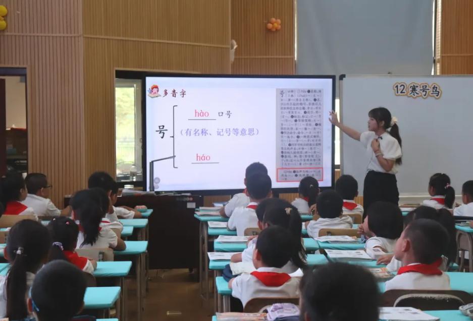 随后,黄婷婷老师执教语文课《寒号鸟》。课堂聚焦 “寓言育人” 核心,通过分角色朗读、关键词品析等方式,引导学生对比寒号鸟与喜鹊的行为差异,让价值观教育自然融入教学全过程。