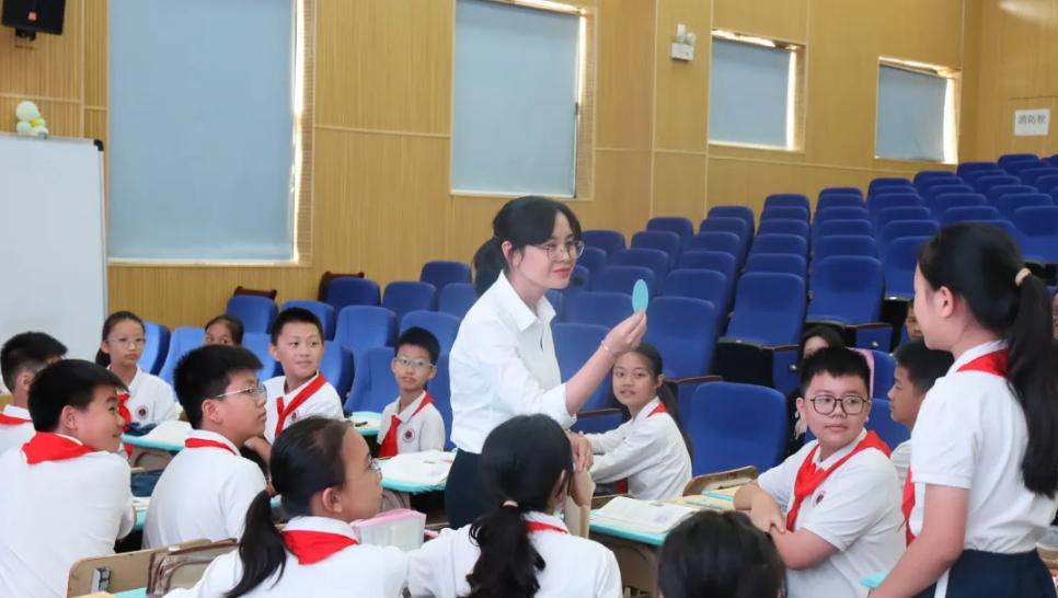 随后,刘艳老师执教数学课《圆的认识》。刘老师让学生自主尝试用绳子、圆规等工具,在 “试错→分析误差→总结方法” 的过程中理解 “圆心定位置、半径定大小” 的核心概念。课堂上,教师适时引入小组竞赛,将 “实践操作→合作反思→知识建构” 的环节有机融入,让抽象的几何知识变得 “可触可感”。