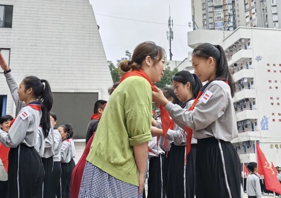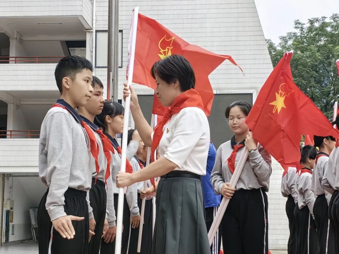 校领导为新建中队授队旗,并为中队辅导员颁发聘书。红色薪火,代代相传,这是一份荣耀的传递,更是一份责任的嘱托!