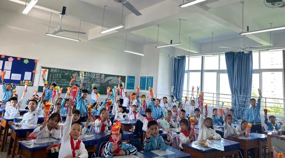 花束展示,满满的成就感,孩子们用自己独有的方式把爱传递给长辈们