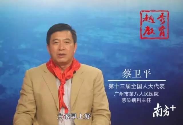 升旗仪式上,医学专家蔡卫平进行了国旗下讲话,讲述他30多年来多次参加非典、登革热等重大突发传染病疫情收治工作,如今冲在抗击新冠肺炎疫情一线的工作经历。他还向同学们提出了“珍惜时间,刻苦学习,尊重科学,报效祖国”的美好祝愿。