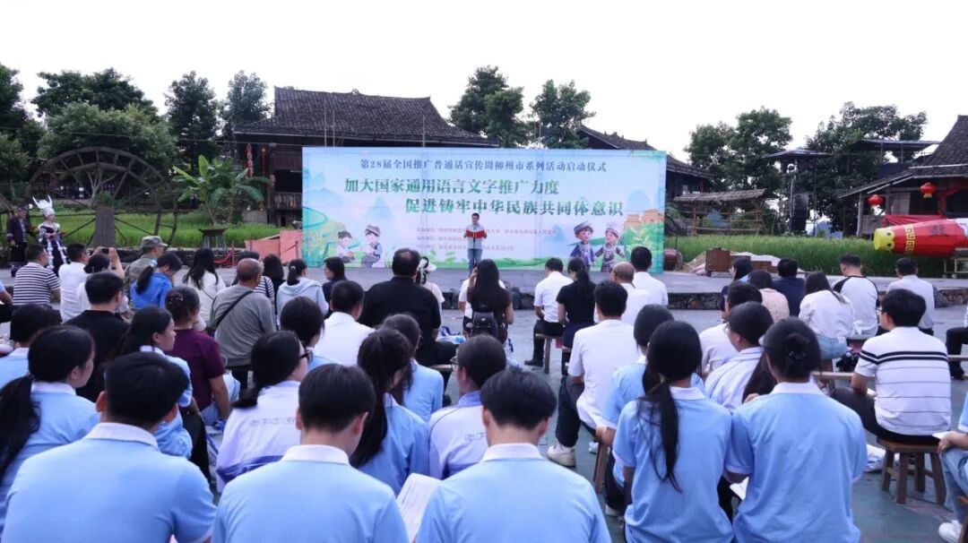 9月24日,第28届全国推广普通话宣传周柳州市系列活动在融水苗族自治县融水镇苗美家园社区热闹启动!柳州市教育局总督学韦海水,融水苗族自治县委常委、县人民政府副县长袁源,广西科技大学教务处副处长姜峰齐聚现场并发表热情洋溢的致辞。来自我市部分市直单位、各县区教育局的代表,以及当地群众和师生代表共同见证了这一精彩时刻。