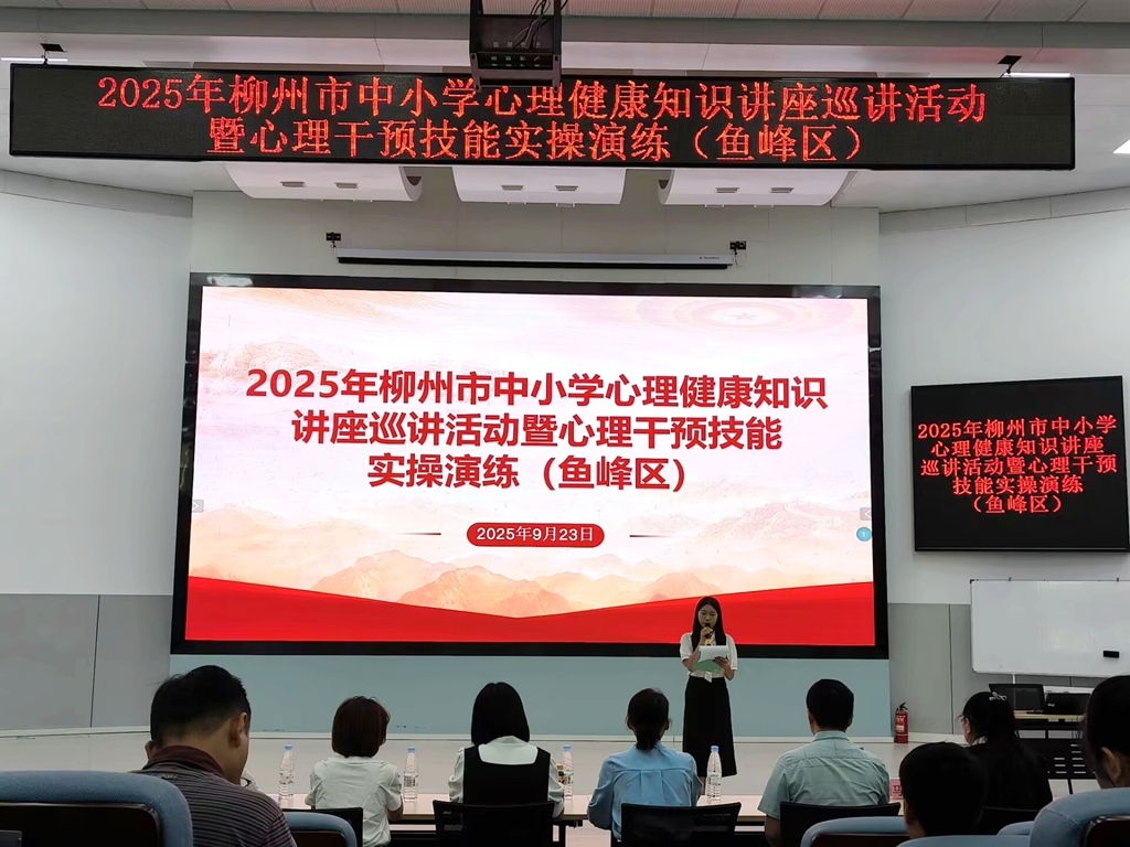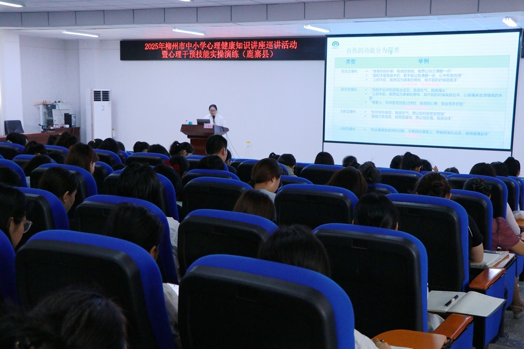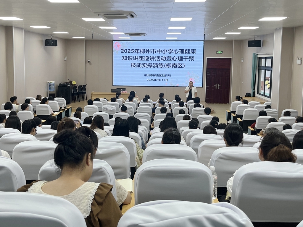 鱼峰区专场活动在柳州市第八中学多功能报告厅举行,辖区中小学、市直属高中及中职学校的专兼职心理健康教育教师齐聚参训。