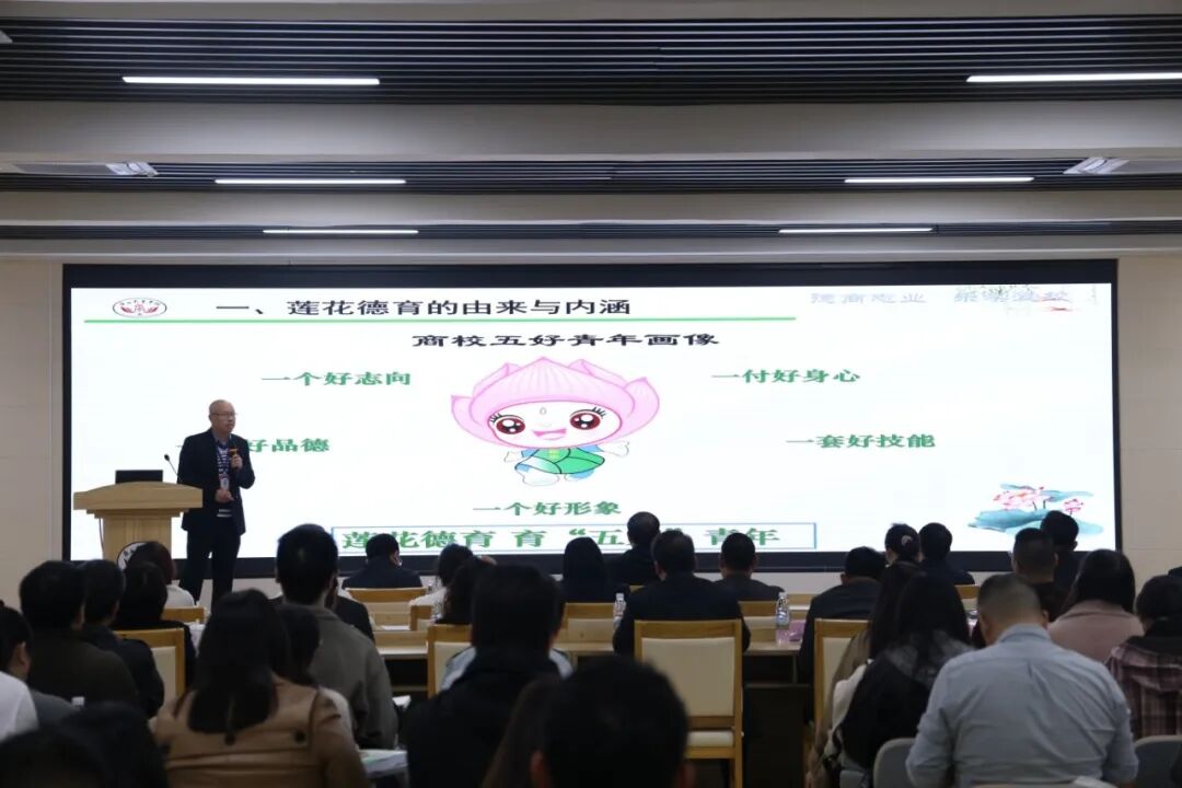 在随后的专家讲座环节,全国德育专家、海口旅游职业学校原德育副校长洪涌以《德,在知行合一处;育,在沉浸在场时》为题,结合大量生动案例,深入剖析了职业院校德育工作的关键与创新,为与会德育工作者提供了深刻的理念启迪与方法指导。