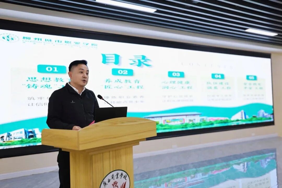 会上,市委教育工委专职副书记、市教育局党组成员杨立永回顾过去一年柳州职业院校德育工作所取得的丰硕成果给予了高度评价。他指出,2025年全市职业院校德育工作扎实推进,成效显著:一是构建多方协同的全员育人机制。打造大中小学“工业思政课”品牌,构建“1399N”育人体系,其一体化模式入选全区创新案例。依托11个自治区级中职班主任工作室,指导6支队伍获全区班主任能力比赛奖;柳州两支队伍获评第二批国家级职教教师教学创新团队。二是落实覆盖成长全周期的全程育人举措。柳州职业技术大学等4校共9项案例入选全区高校思政工作改革推广项目。职业教育德育类课题立项70余个(自治区级10个),培育优秀德育案例136个。三是建构多维协同的全方位育人生态,促进五育融合。职业院校在世界职业院校技能大赛获1金7银16铜,在自治区第十届学生运动会获2金1银。市一职校在全国劳务协作大会展示交流,市二职校校园文化案例获全国中小学美育改革创新优秀成果一等奖,为广西唯一最高奖项。立足新阶段、面对新要求,他希望各职业院校在下一步工作中要坚定政治方向,夯实立德树人思想根基,深化融合创新,突出职业教育类型特色,强化协同联动,凝聚多方育人合力,加强队伍建设,提升德育工作专业水平。他号召各职业院校守正创新、锐意进取,共同推动柳州职业院校德育工作实现高质量发展,为培养更多兼具高尚品德与精湛技艺的“柳州工匠”提供坚实支撑,为谱写中国式现代化柳州篇章贡献职教力量。