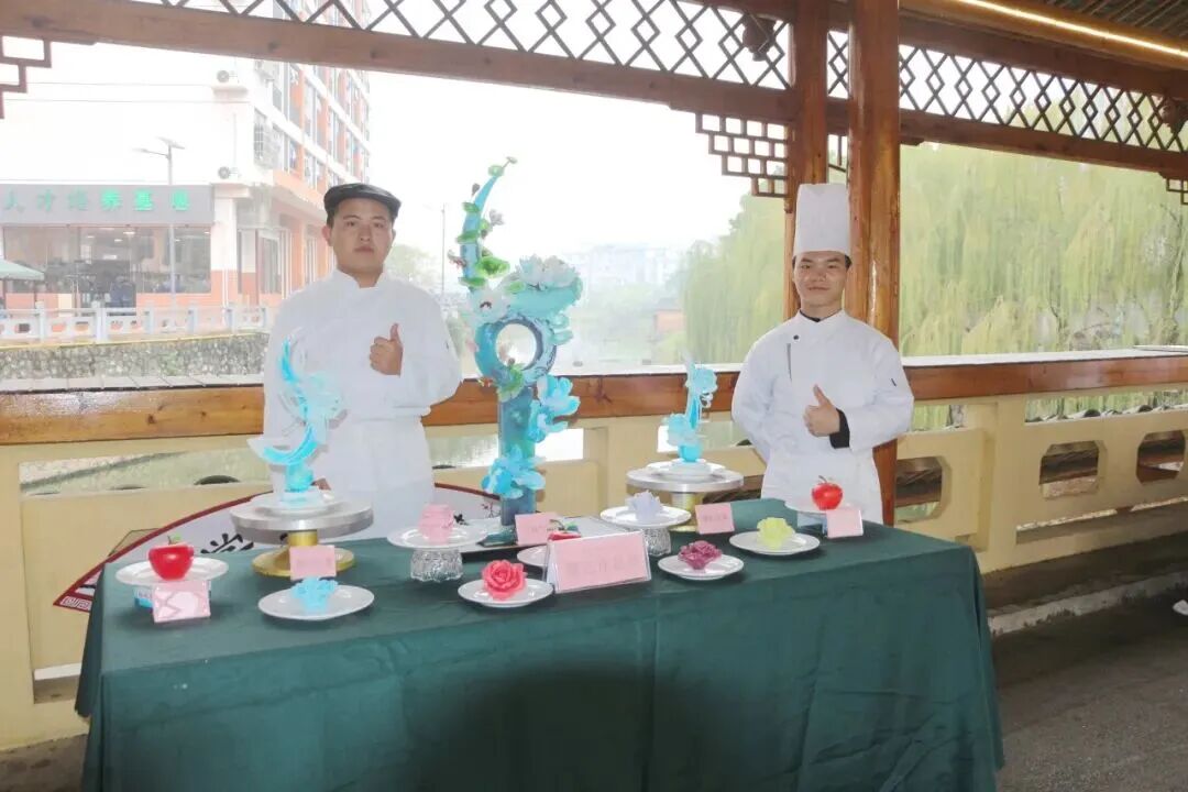 与此同时,恰逢广西商业学校第十五届校园文化技能节,校园内成为技能展示的舞台。市场营销专业的新零售竞赛、中餐烹饪专业的精致桂菜作品展、幼儿教育专业的优美舞蹈等25个专业的技能展演活动在各教学系部同步开展。