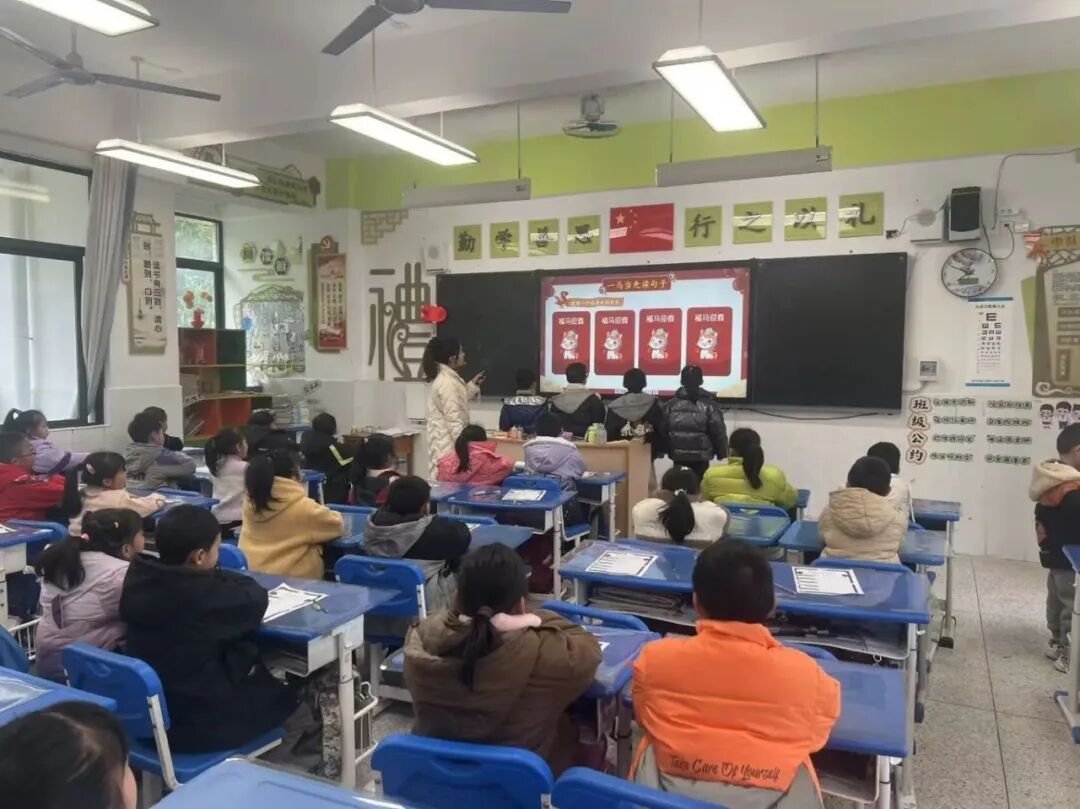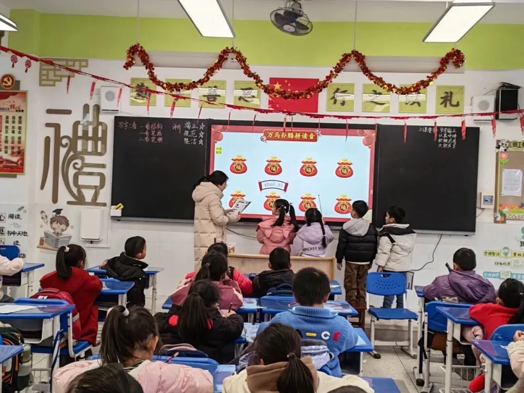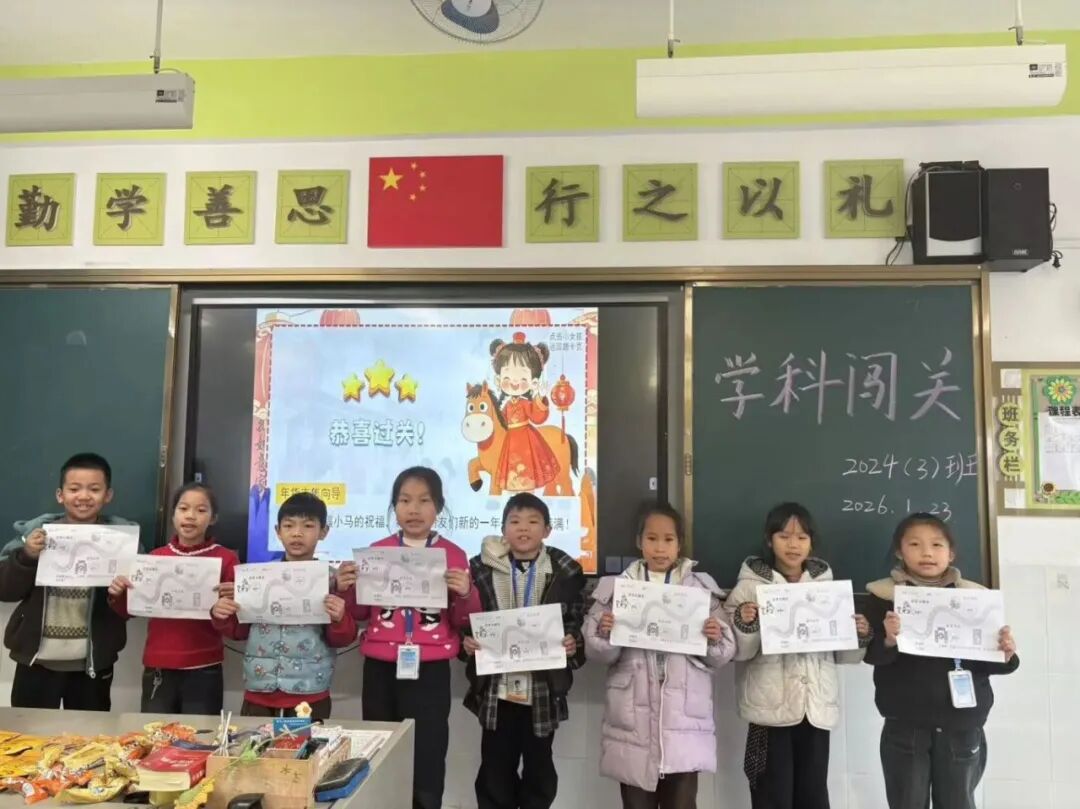 柳州市阳和工业新区六座中心校一、二年级的孩子们迎来了一场年味十足的无纸化测评。一年级萌娃们手持“福马迎春”闯关卡,在“万马奔腾拼读音”“马踏飞燕识字词”等五大语文挑战中,自信拼读、流利诵读、大方表达。二年级的“年货市集”语文场妙趣横生,孩子们串起“生词糖葫芦”,创作“句子春联”;“疯狂数学城”里,他们触摸图形盲盒、比拼速算转盘、动手测量合作解题,思维在游戏中飞扬。这场融合了传统文化与学科知识的趣味闯关,不仅全面考查了学生的学习素养,更让他们在欢声笑语中体验到了学习的乐趣与成就感,为校园增添了别样活力。