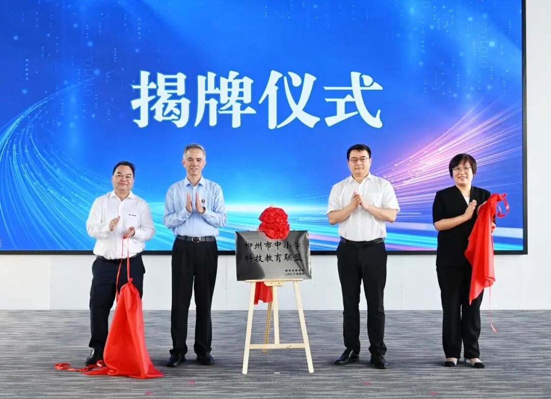 活动现场,北京理工大学教授、电动车辆国家工程研究中心首席科学家孙逢春,柳州市副市长汤振国,柳工集团董事长郑津,柳州市教育局副局长(主持工作)龙玫共同为联盟揭牌。首批“柳州市中小学科技教育实践基地” 分别落地柳工集团和北京理工大学,未来将为全市中小学生打开“走进智能工厂、对话顶尖高校”的实践窗口。