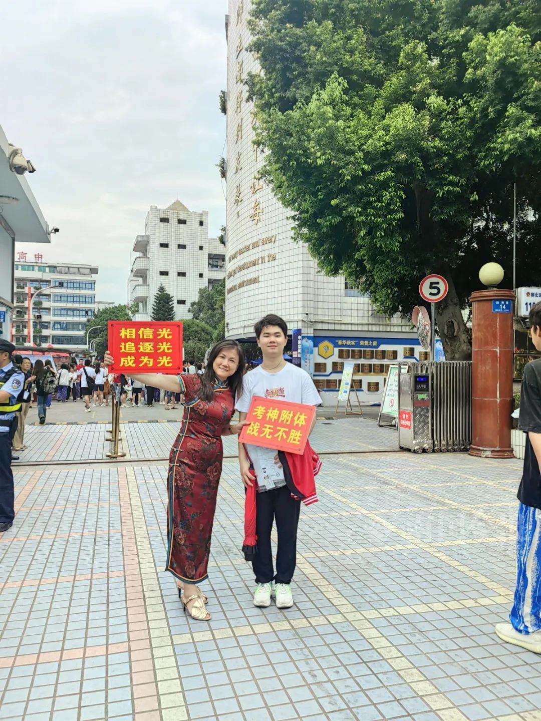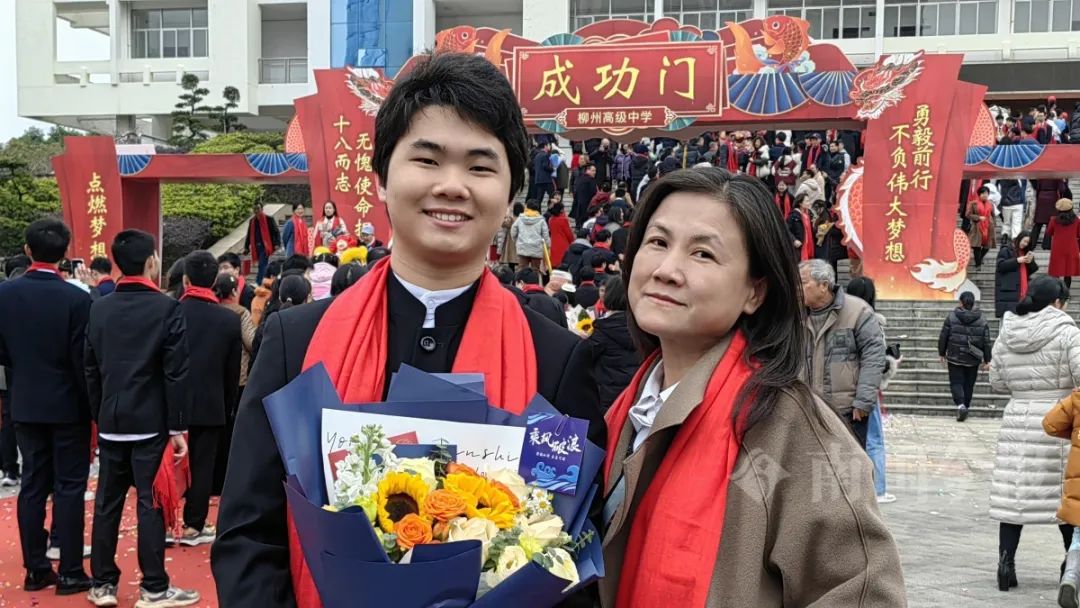 今年高考,杨骐嘉和给自己送考的妈妈合影。受访者供图
