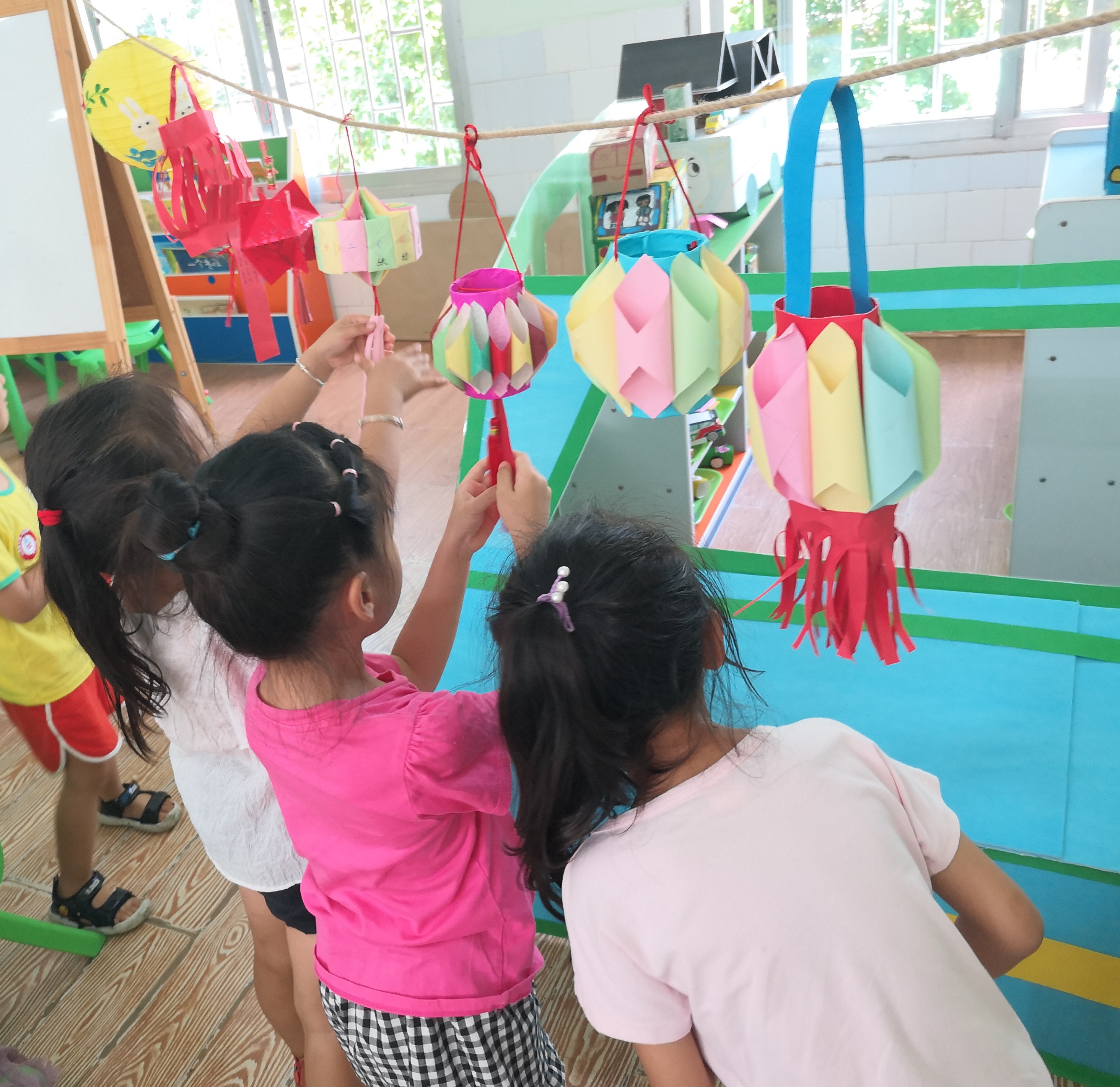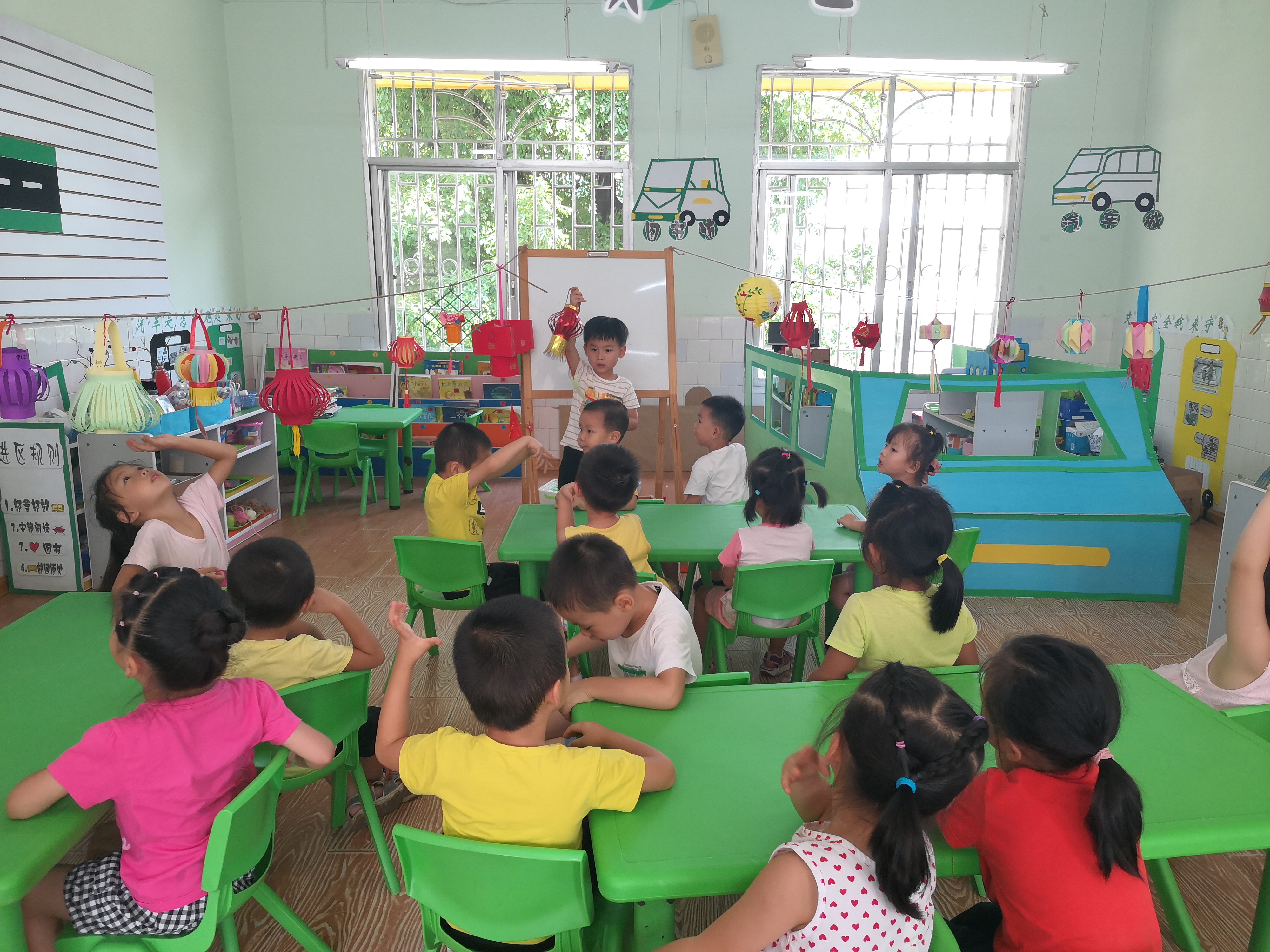 活动中,各班级教师通过不同形式,让孩子们了解中秋节的传统文化,知晓中秋节的习俗趣事。看,孩子们在一起观赏亲子制作的花灯,有些孩子已经按捺不住要给小伙伴出灯谜了。