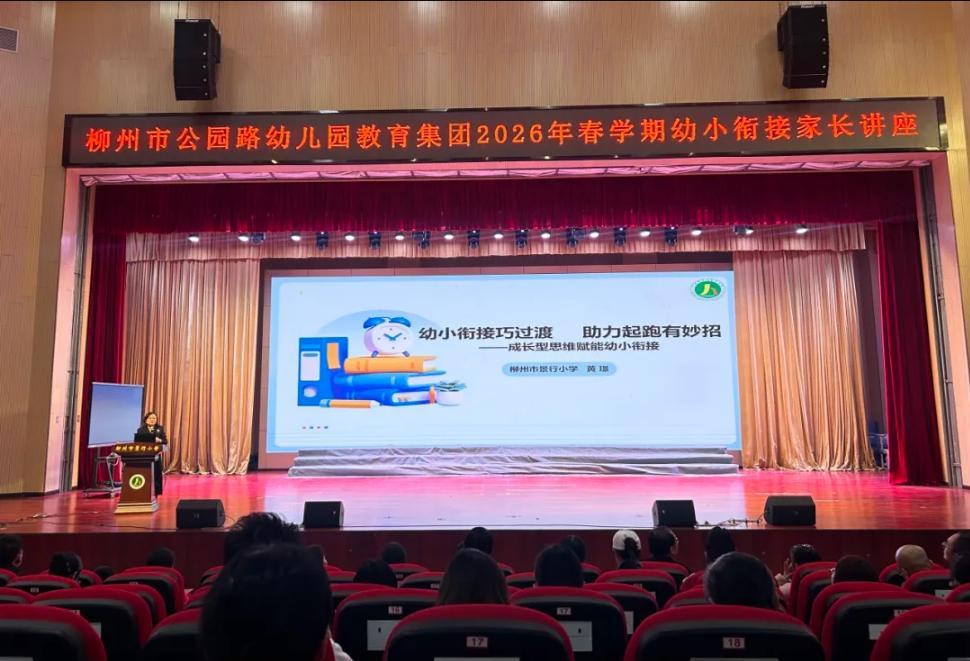 幼小衔接,是孩子从幼儿园迈向小学的温柔跨越。为破解家长衔接困惑,树立健康为先的科学育儿理念,助力幼儿身心健康平稳过渡,2026 年 3 月 13 日晚,柳州市公园路幼儿园教育集团在柳州市景行小学总部,开展 “健康护航,科学衔接” 大班幼小衔接专题讲座。