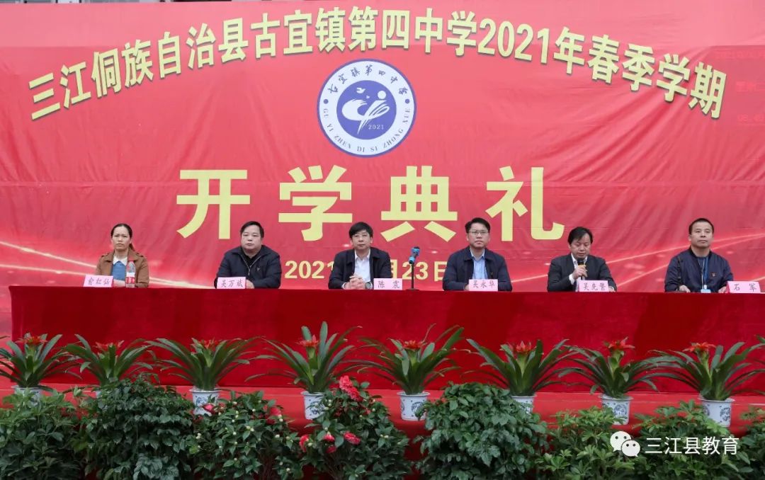 2月23日上午, 三江侗族自治县古宜镇第四中学举行新校成立仪式暨2021年春季学期开学典礼,三江县委常委、副县长陈震出席仪式并致辞。三江县古宜镇党委政府领导、教育局领导班子以及教育局各股室代表、古宜镇第四中学全体师生和部分家长代表参加三江侗族自治县古宜镇第四中学新校成立仪式。