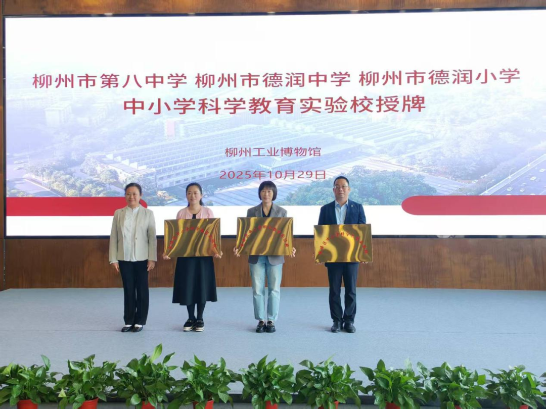 为柳州市第八中学、柳州市德润中学、柳州市德润小学三所实验校授牌