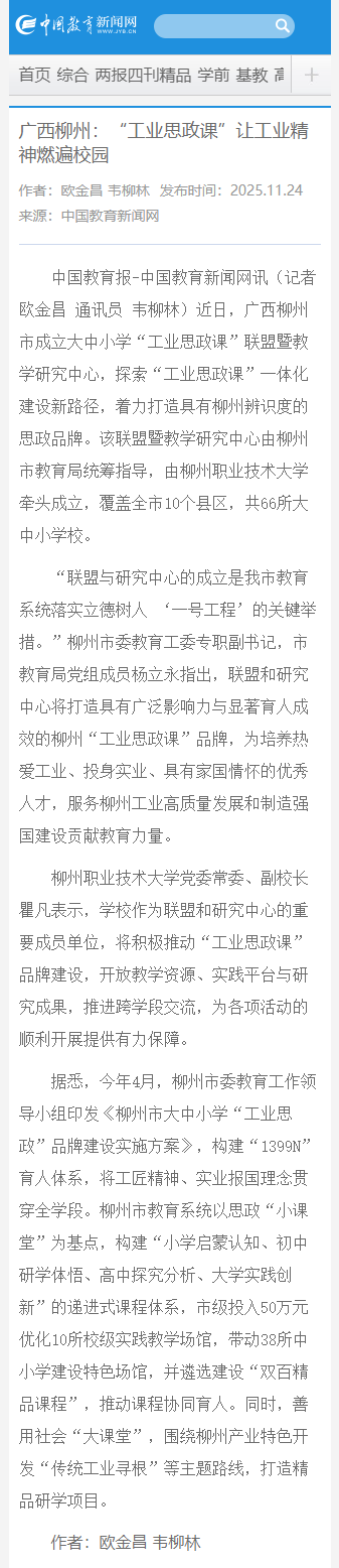 【中国教育新闻网】广西柳州:“工业思政课”让工业精神燃遍校园