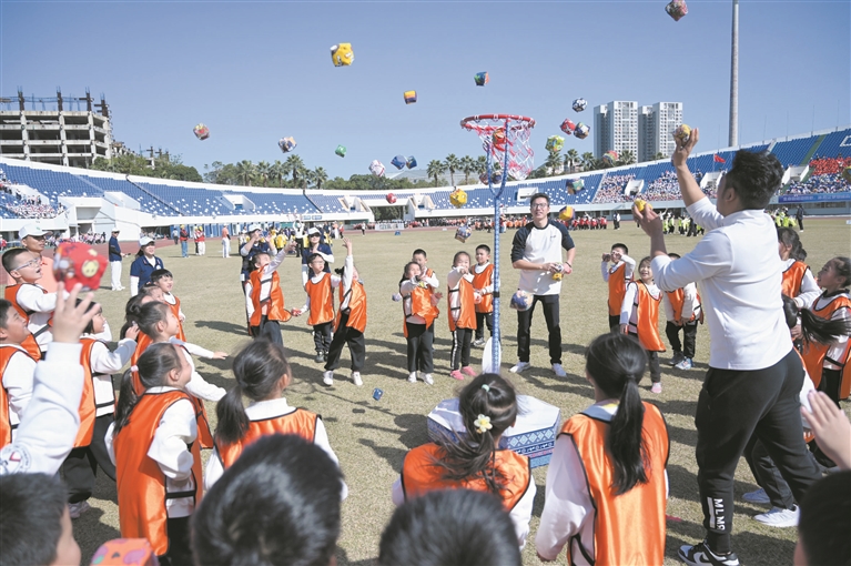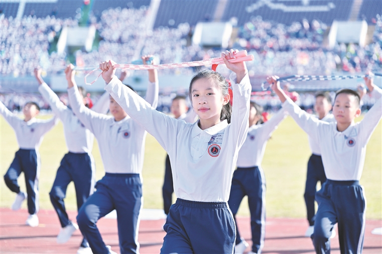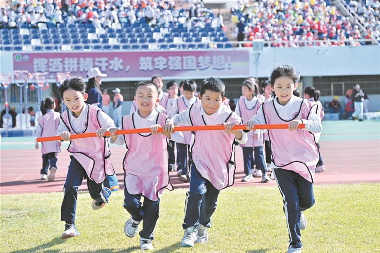 市景行小学教育集团响应“强化体育育人功能”号召,举行万人体育节。该教育集团7个校区的上万名师生通过“最长的绳子”“投包入筐”“攻城夺宝”等十余项趣味与竞技兼具的活动项目,激发学生运动热情,提升身体素质,培养坚韧不拔、团结协作的精神。