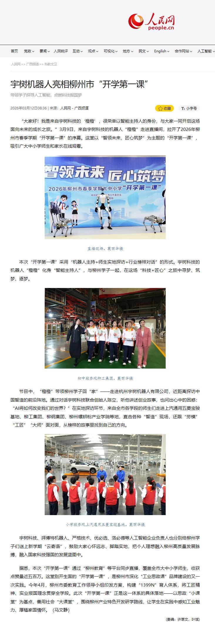 【人民网】宇树机器人亮相柳州市“开学第一课”