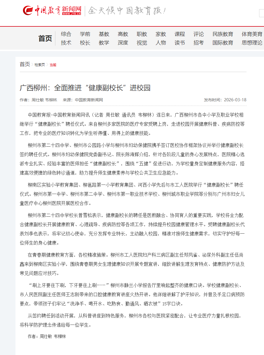 【中国教育新闻网】广西柳州:全面推进“健康副校长”进校园