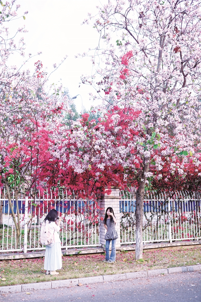 眼下,柳州的洋紫荆开得正旺。柳州市第一中学里,300多株洋紫荆迎来“爆粉”时刻,一簇簇粉嫩的花朵挤满枝头,把校园打扮得超级浪漫。学校还特意举办了“赏花跑”活动,同学们一边跑步一边赏花,感受大自然的生机,身体和心灵都变得更加朝气蓬勃。