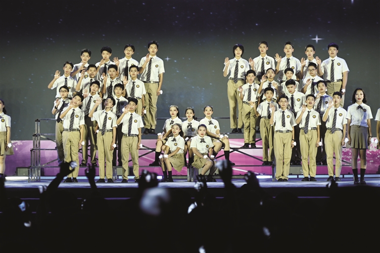 学生们合唱《亲爱的你呀》。