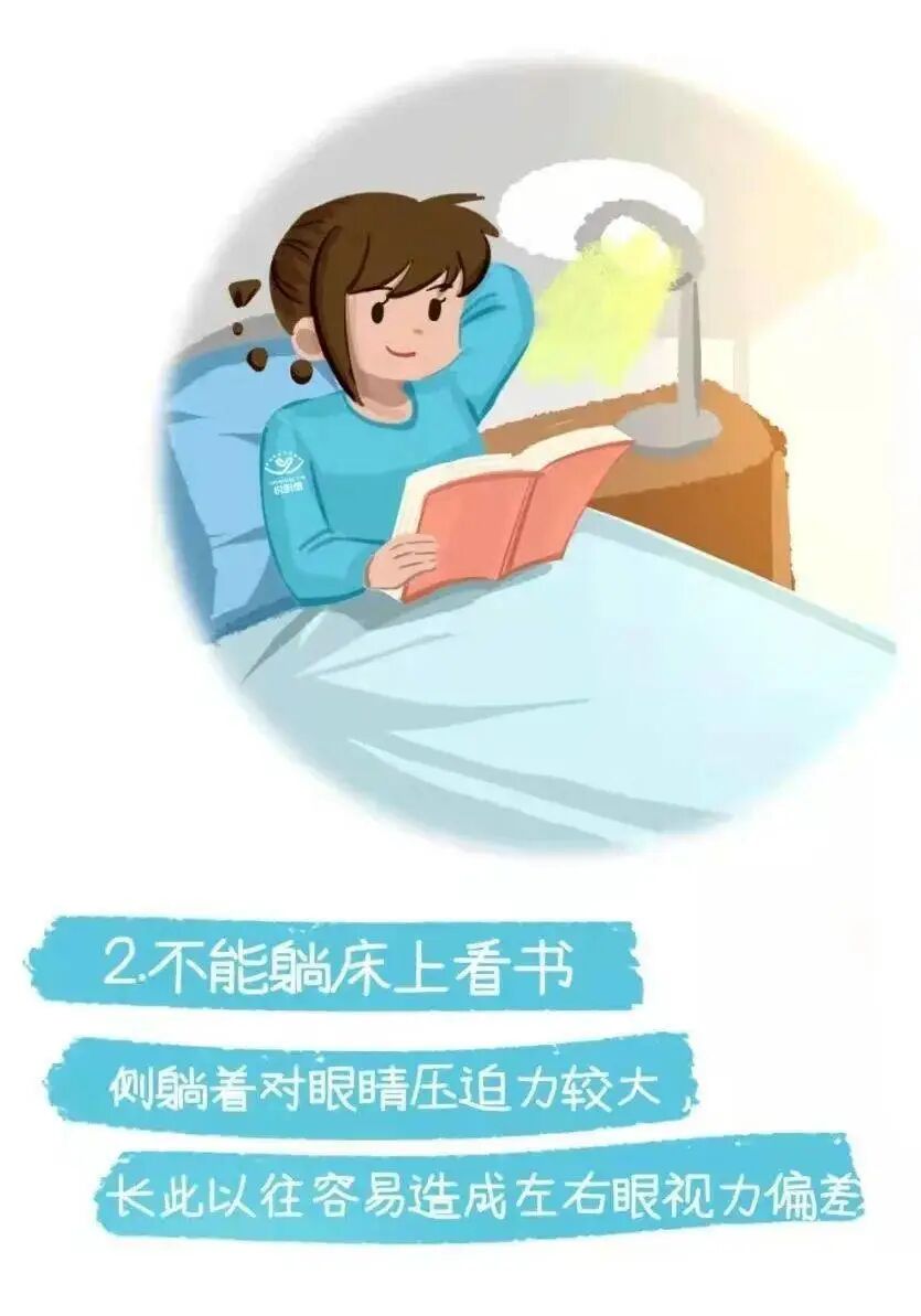 2.不要在卧床和走路时或者在动荡的车厢内看书;