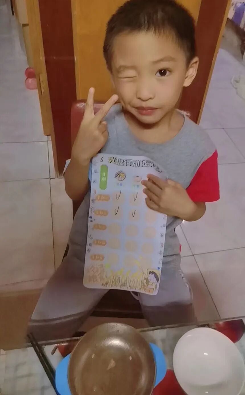 同时在家里也不忘打卡记录,督促爸爸妈妈一起争当光盘小达人。