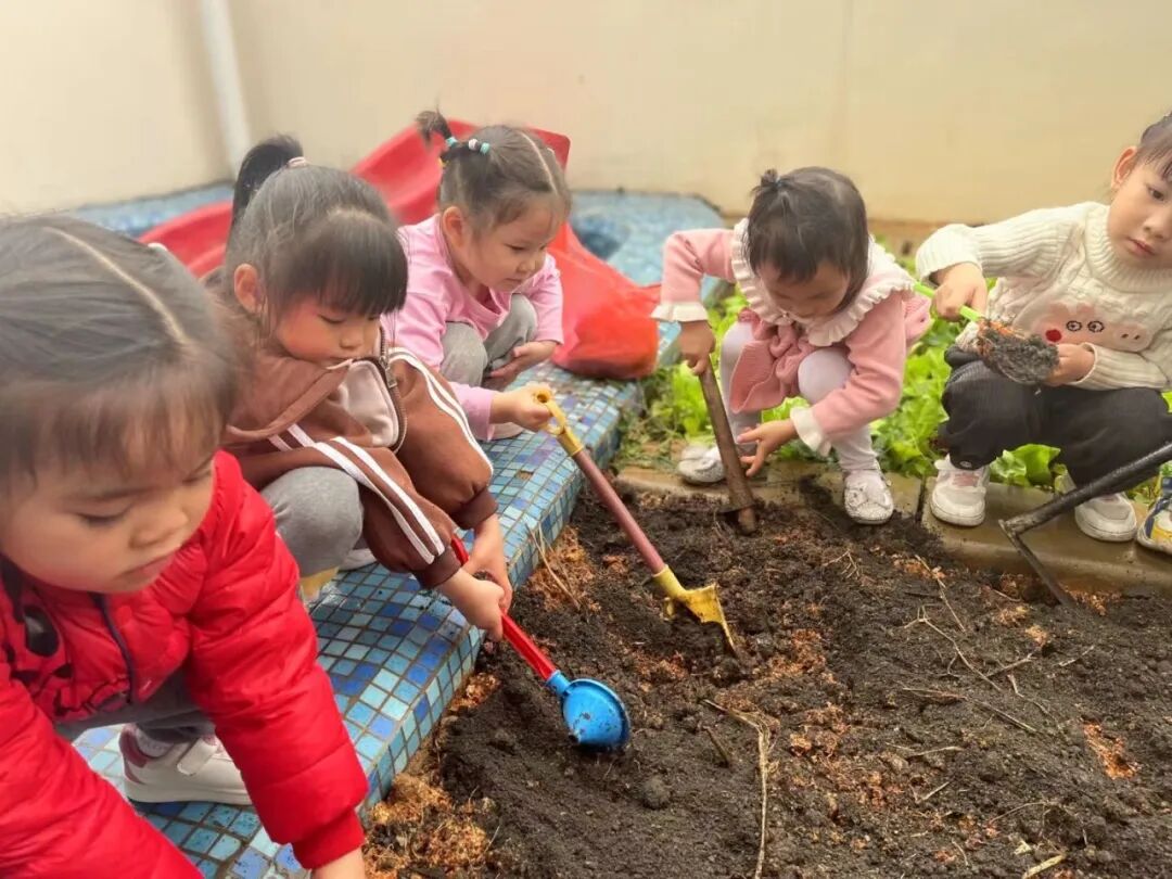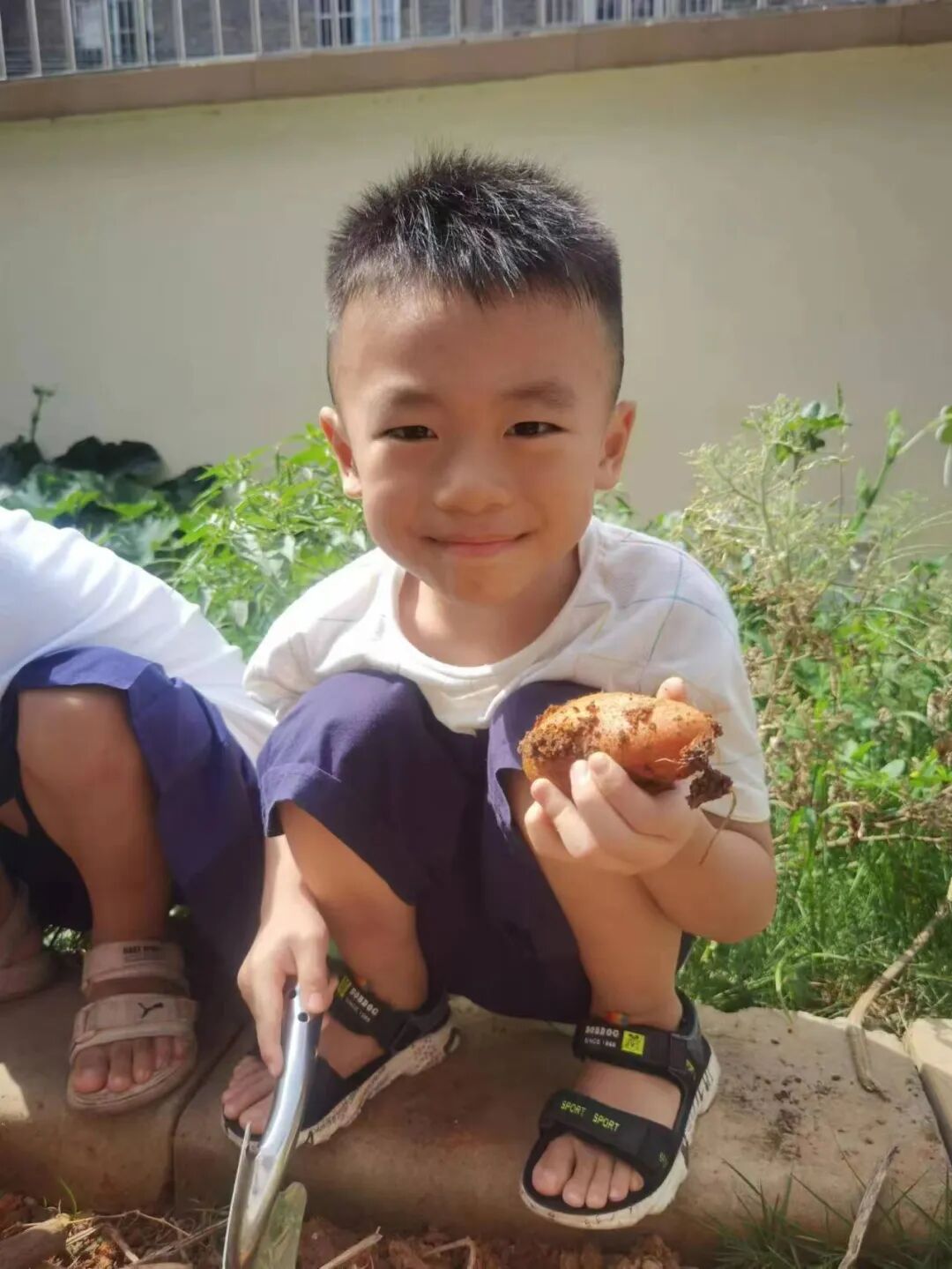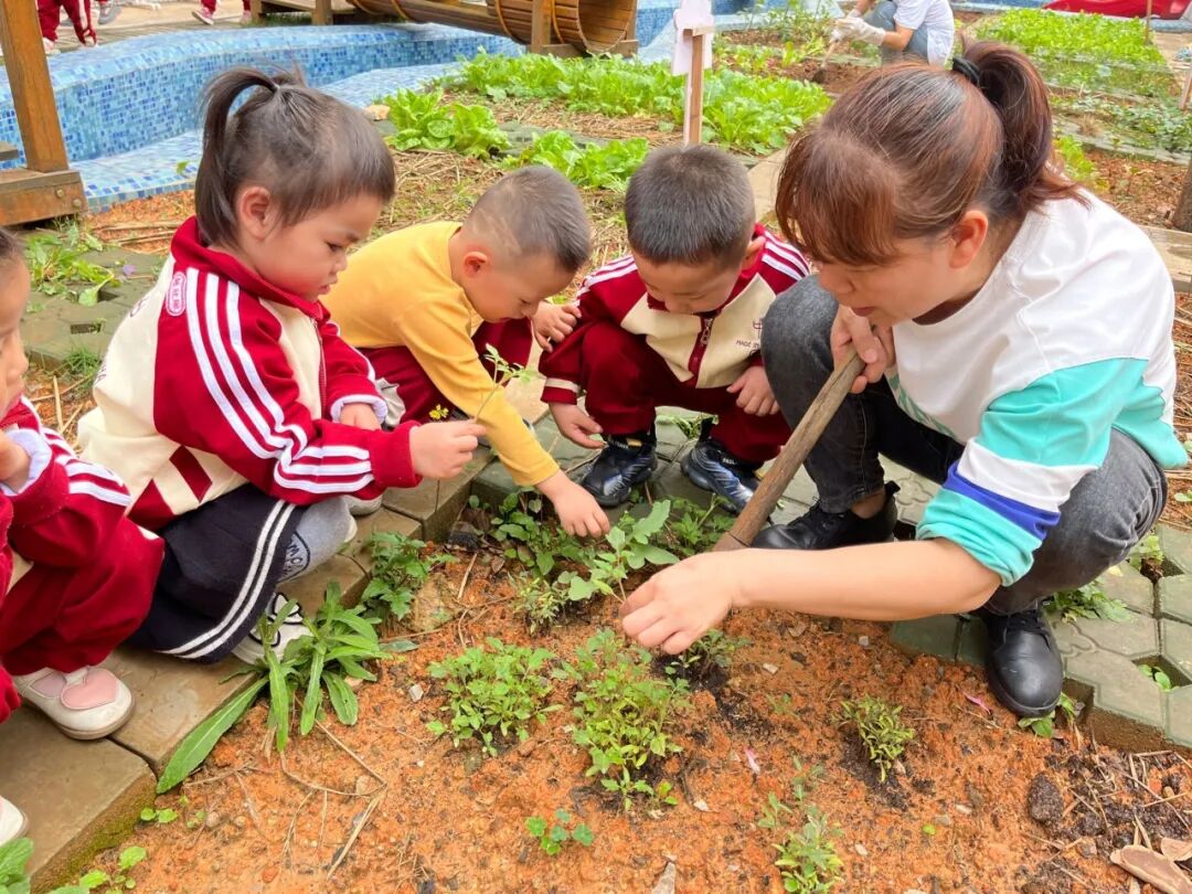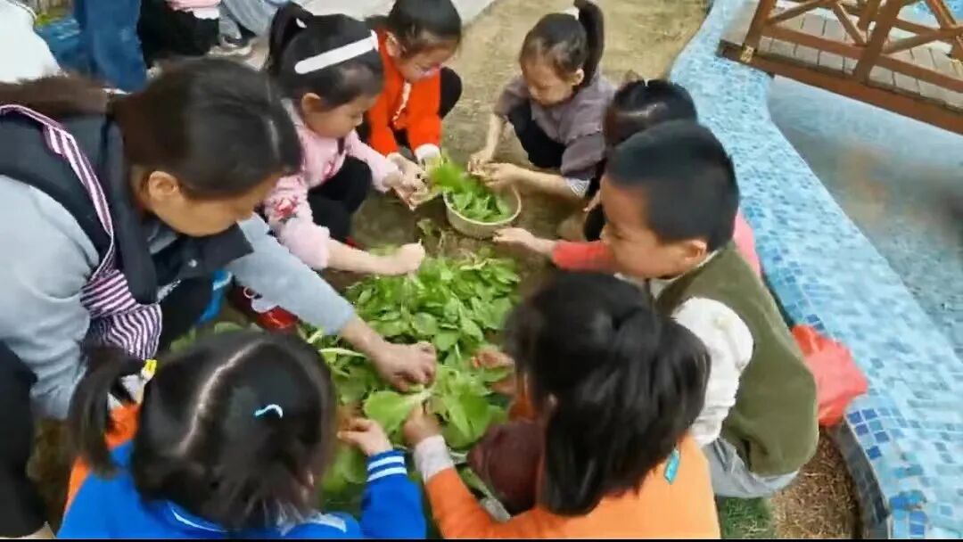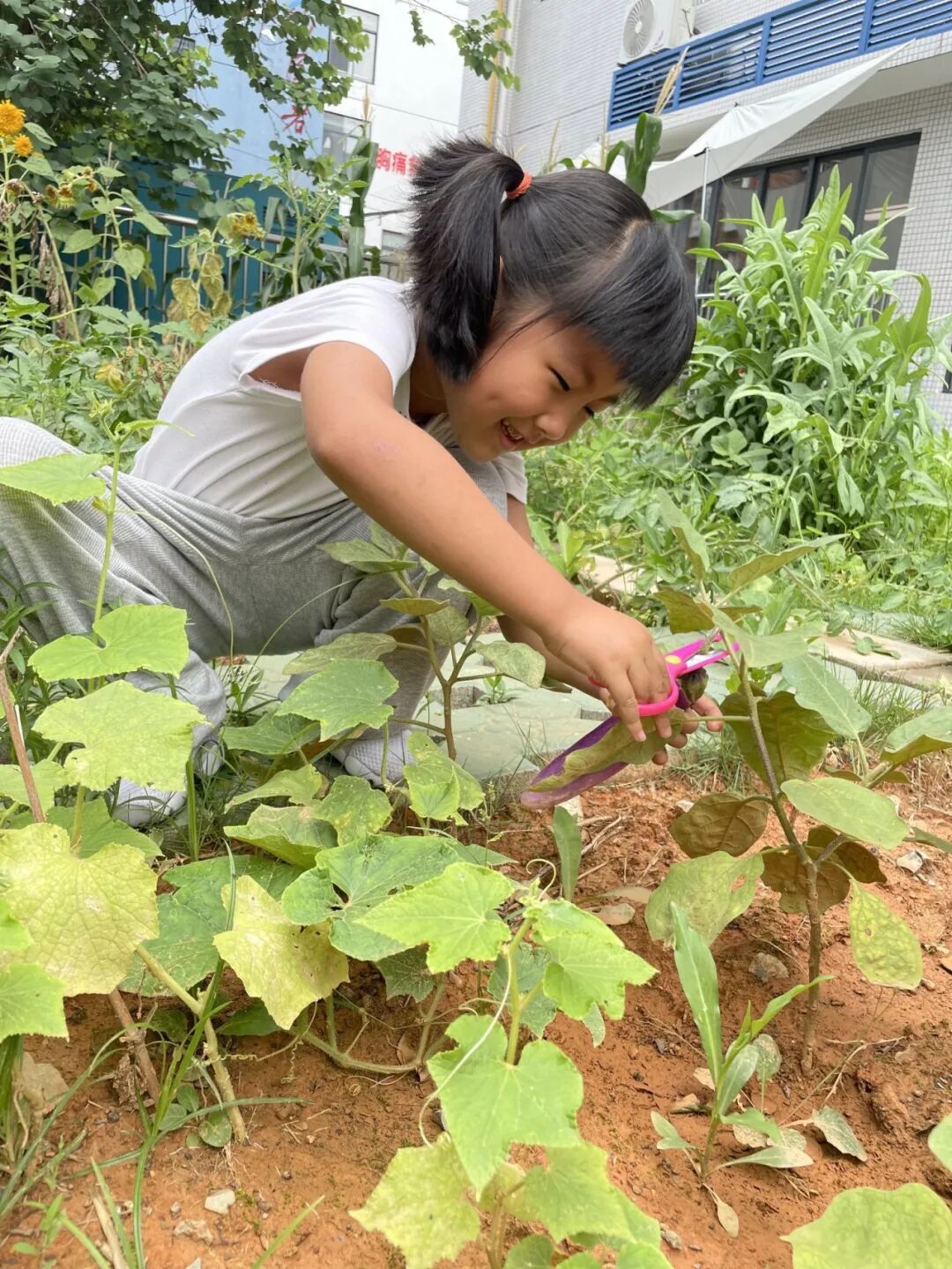 三幼菜地里的蔬菜长势甚好,孩子们用自己的双手体验农民伯伯们辛苦翻地、播种、插苗、照料等一系列过程,感受丰收的喜悦并珍惜不易。