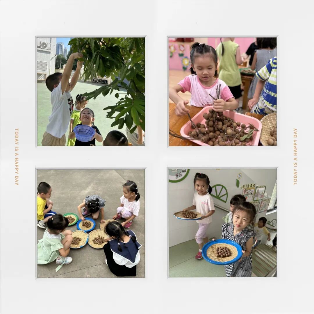 经历从春夏到秋的等待,孩子们将幼儿园里成熟的龙眼采摘后进行晾晒。