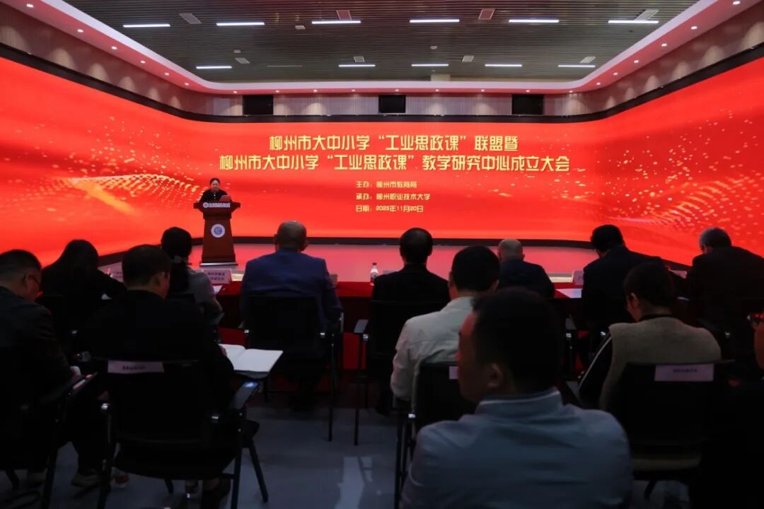 11月20日,柳州市大中小学“工业思政课”联盟暨教学研究中心成立大会在柳州职业技术大学官塘校区举行。市教育局相关科室,市教科所、职教中心负责人,各县区教育局及局属学校思政工作分管领导,以及联盟单位代表共同出席。