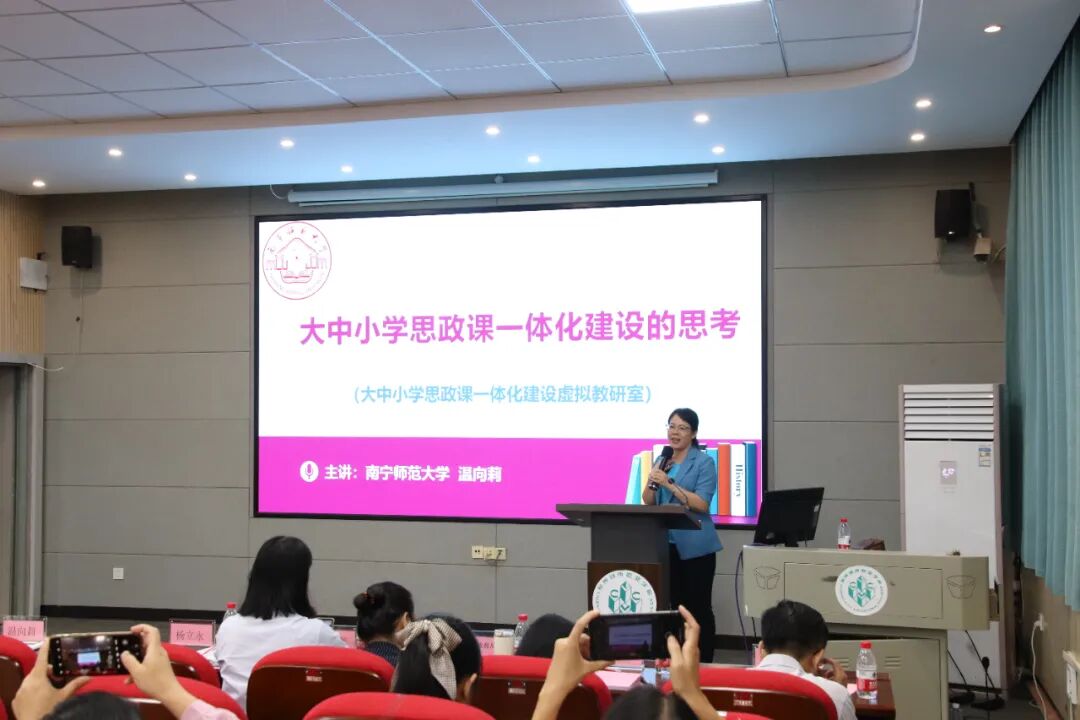 柳州市大中小学思政一体化建设专家指导组成员,思政课名师工作室主持人,各高校马克思学院负责人,各城区教育局,局属高中思政分管领导等参加会议。全市思政教研员、大中小学思政课教师通过直播观看了本次推进会。