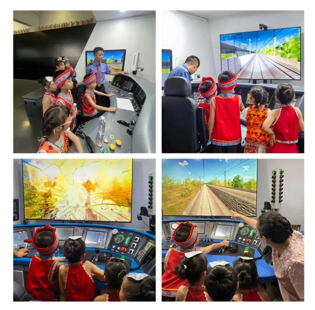 刚踏入园区,孩子们就被会“讲故事”的文化浮雕墙和高大的火车头吸引。“这个大轮子是什么?”“叔叔拿着的是什么工具?”稚嫩的提问声中,工作人员用生动语言讲述机务段百年发展史,孩子们从斑驳的浮雕纹路里,从铁路人专注坚守的故事里读懂了老一辈铁路人精益求精的匠心传承。在沙盘实训基地,蒸汽机车、复兴号动车组模型让孩子们挪不开眼。“3、2、1,出发!”最激动的当属动车模拟驾驶环节。孩子们踮着脚尖坐上驾驶座,小手认真操作仪表盘。
