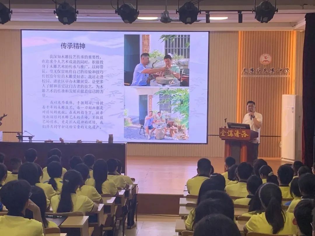 近日,中国工艺美术大师、国家级非物质文化遗产木雕传承人黄成非先生应邀携刀笔之韵走进鹿寨中学校园,为学生们宣讲非遗木雕技术传承精神。