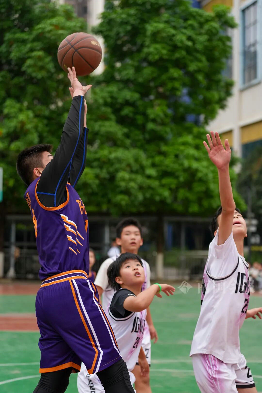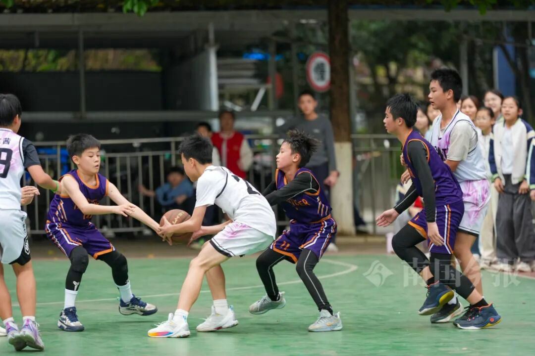 从清晨到日暮,从小学到中学,柳州校园的赛场上,篮球撞击地面的砰砰声、足球破网的唰唰声、气排球划过的弧线,交织成少年活力的交响。
