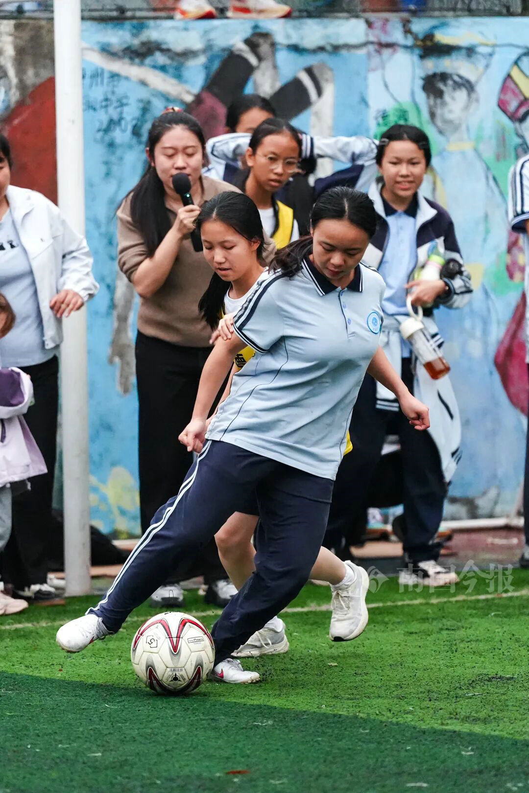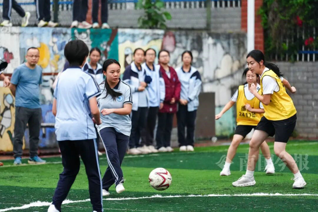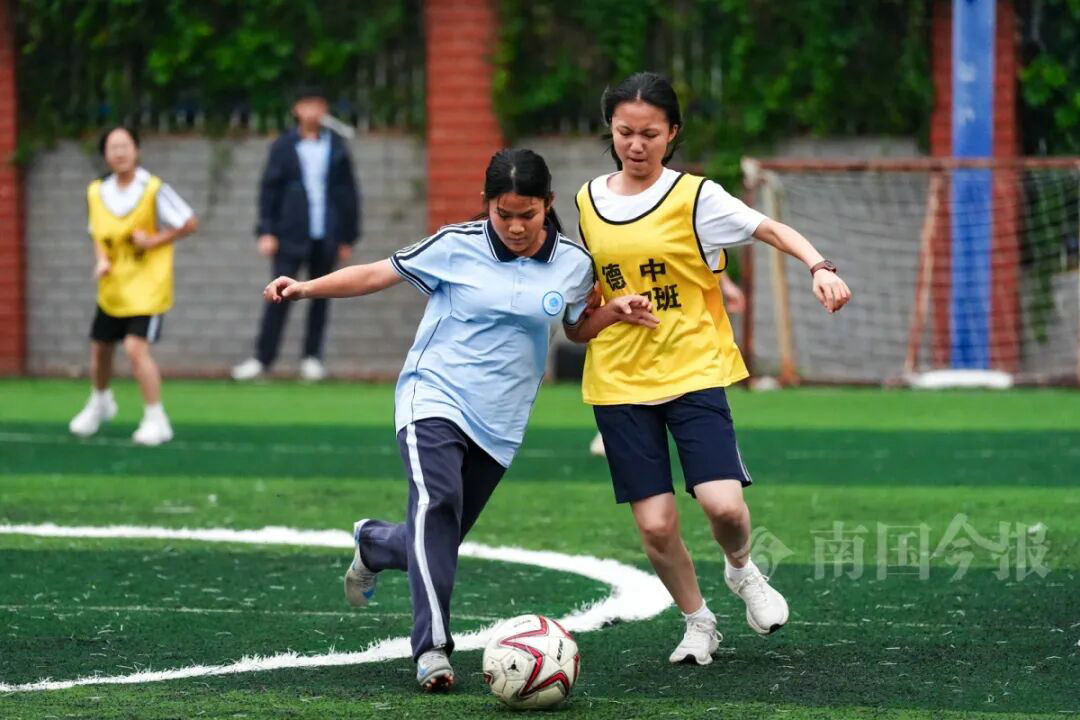 女生足球赛也精彩。记者何俊涛 摄