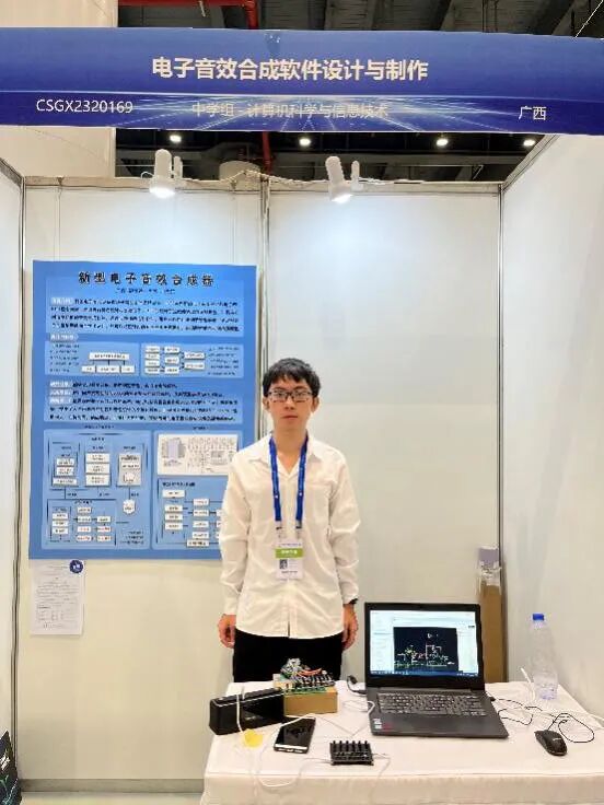 2023年8月20日-25日,第37届全国青少年科技创新大赛在湖北省武汉市隆重举行,柳州铁一中学城站2021级17班卢光谊同学携其作品《新型电子音效合成器》参赛。经过逐轮的专家问辩,卢光谊同学一路过关斩将,杀出重围,荣获全国一等奖,这也是本次大赛广西代表队高中组唯一的一等奖。
