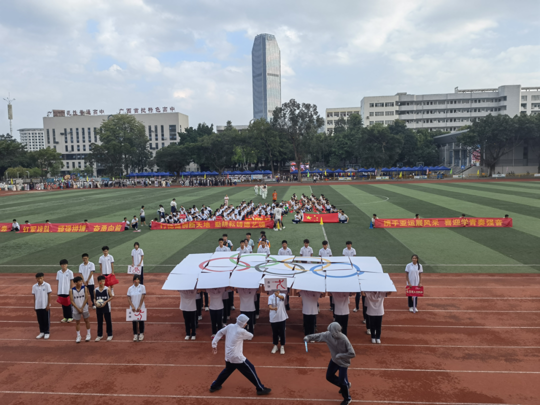 10月12日,柳州铁一中学城站校区与柳东校区分别举行2023年第27届全民健身达标运动会开幕式。合着激昂有力的音乐,喊着整齐嘹亮的口号,由各班同学组成的方队进行入场式表演,他们用热情舞动青春,展现班级风采。