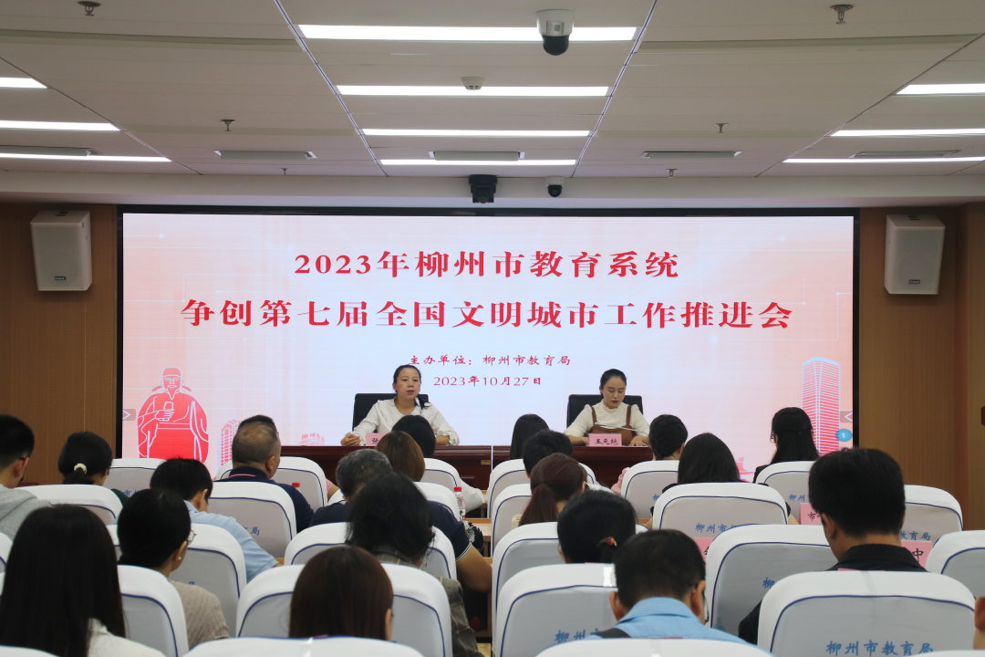 10月27日,柳州市教育局召开2023年全市教育系统争创第七届全国文明城市工作推进会。会议梳理了近期我市教育系统争创全国文明城市工作中存在的问题及短板,并对下一阶段的重点工作任务进行再部署、再推进。