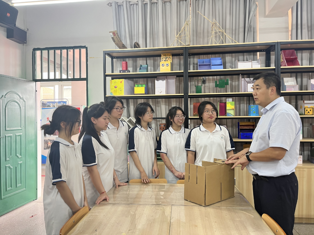 来到市九中,潘旭阳一行对学校校园周边管理、高考备考、文化建设、普职融通及科技教育等方面进行了深入的了解和指导。在实地查看学校的学生积极发展中心、通用技术展厅、设计室、操作室以及现代农业科技园,听取学校工作汇报后,潘旭阳充分肯定了学校“尊重差异,多元统一,和谐共生,各有所乐”的“和乐”文化理念,表示这个理念既符合学校的实际情况,又着眼于学生和学校的发展。鼓励学校总结好普职融通班的办学经验,积极交流推广。此外,他还希望学校以科技教育为主要调研方向,及时通过问卷量表等方式追踪学生大学的学习情况及毕业就业意向、就业情况,以此为基准,不断丰富学校科技教育。
