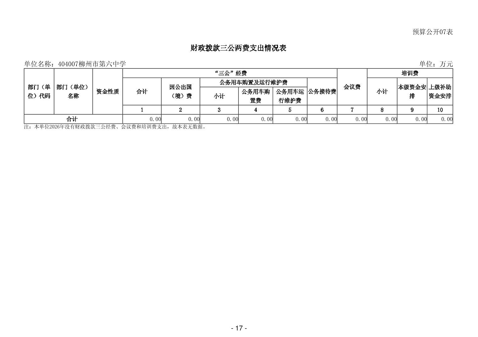 404007柳州市第六中学2026年单位预算公开说明