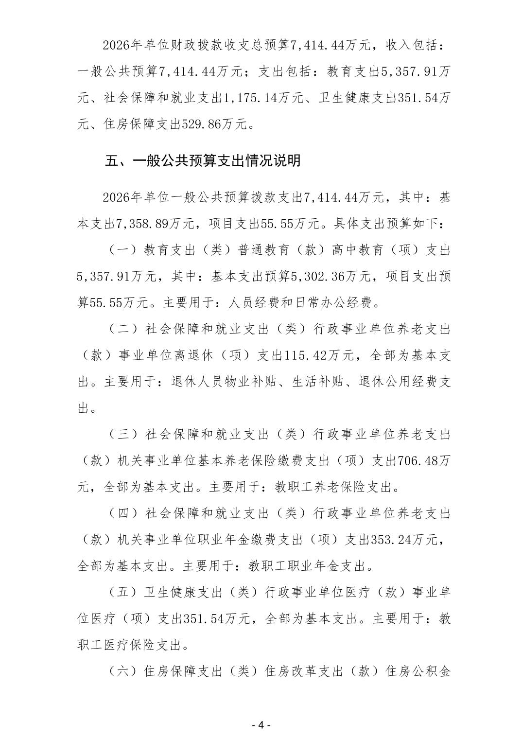 404012柳州市柳江中学2026年单位预算公开说明