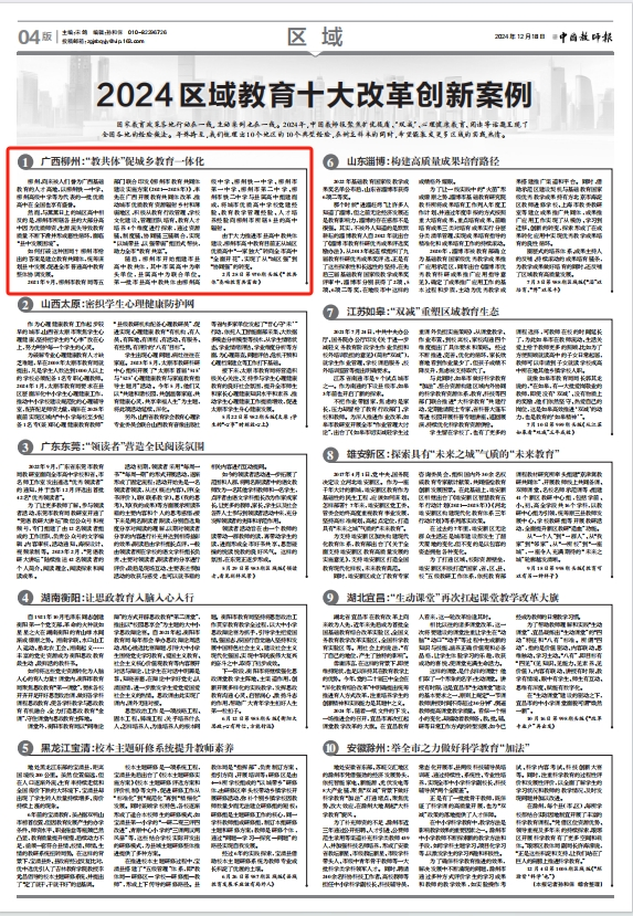 ❖ 柳州市“教育共同体”促城乡教育一体化入选《中国教师报》2024区域教育十大改革创新案例,为广西唯一入选的案例。