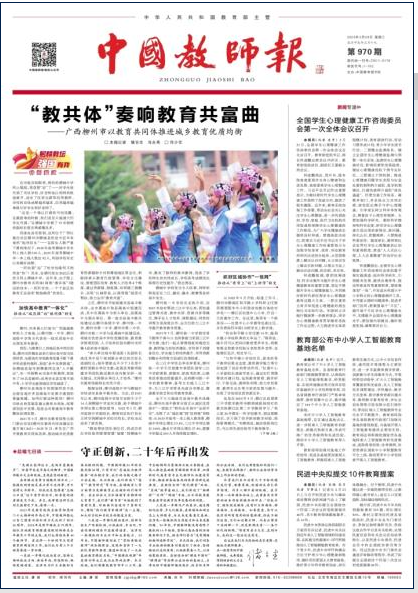 ☑ 2024年2月28日《中国教师报》刊发我市打造教育共同体工作经验《柳州“教共体”奏响教育共富曲》。