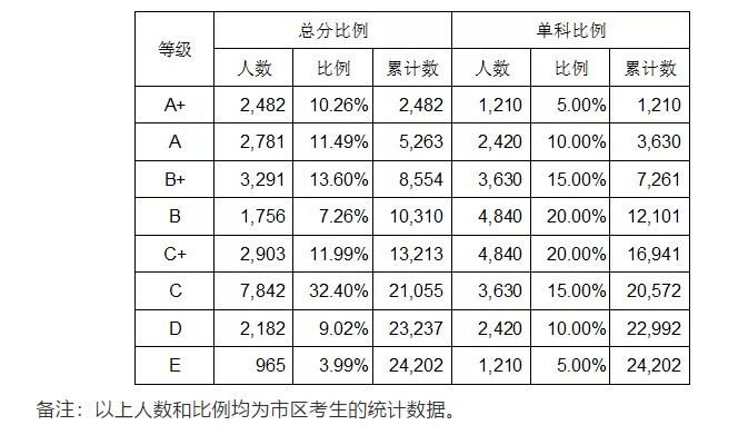 2019年中考柳州市区等级划分情况